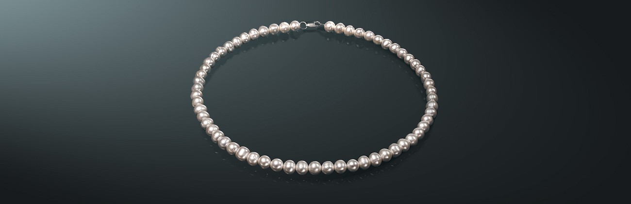 Ожерелье из белого пресноводного жемчуга, с замком из серебра 925˚.