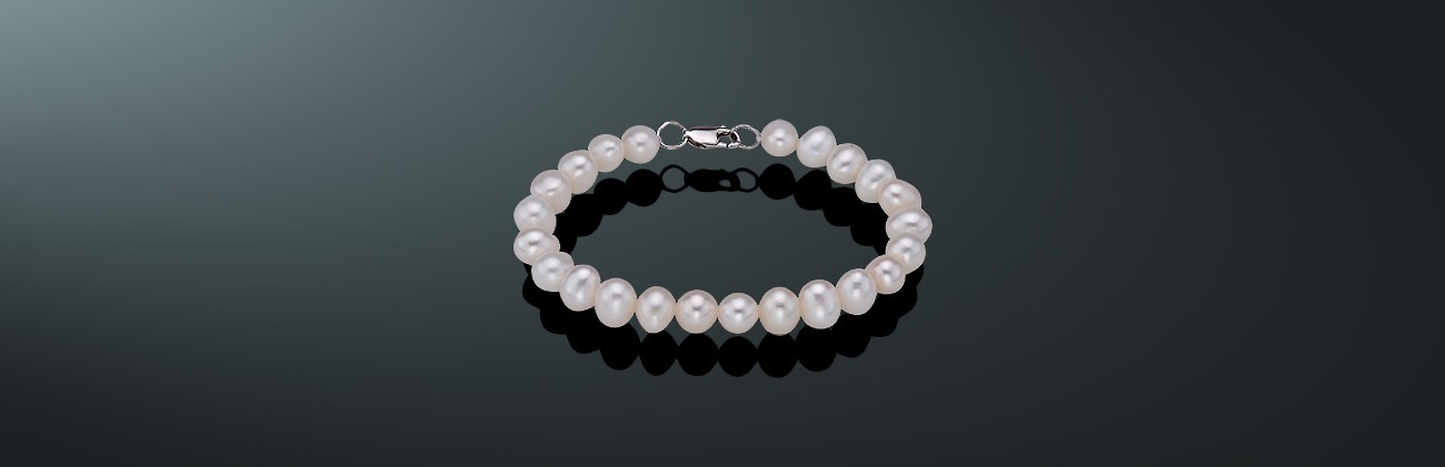 Браслет из белого пресноводного жемчуга, с замком из серебра 925˚.