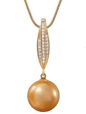 Подвеска из коллекции MAYSAKU: жемчуг Южных морей идеальной сферической формы, золото 585˚, 25 бриллиантов (0,06 ct), государственное пробирное клеймо. Вес изделия 5,02 г.